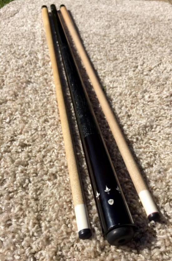 For sale , beautiful ebony and ivory cue with silver dots under each ivory inlay . The butt weighs around 15.1 ounces, with black lizard wrap. Shaft 1- weighs 4.3 ounces with ivory ferrule . 12.84 below ferrule... Shaft 2- weighs 4.2 ounces with ivory ferrule. 12.65 below ferrule. Joint is 5/16x14 steel with silver ring. Vollmer cue is a monster player with an outstanding hit. Everything is straight and sound. VOLLMER is one of the top cue makers in the world , and has studied under tony at black boar cues. Cue comes with matching joint protectors that have some cracks or scuffing in finish. Asking $2000 or best offer.........