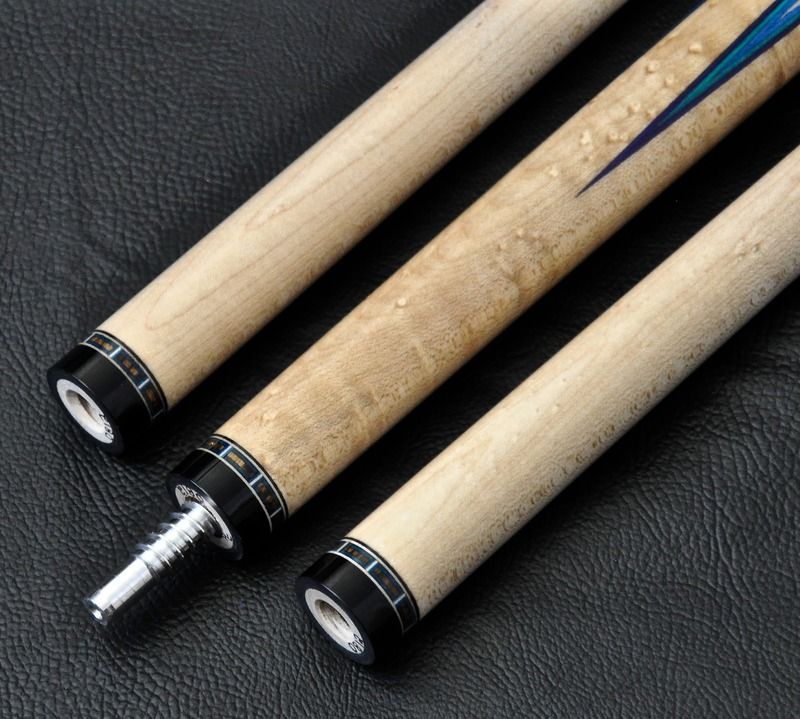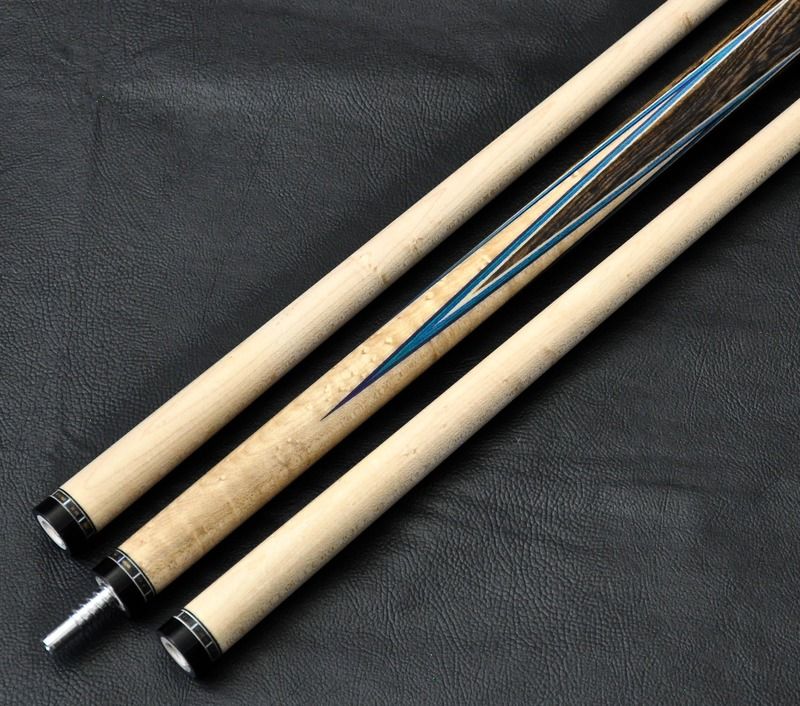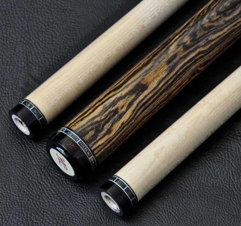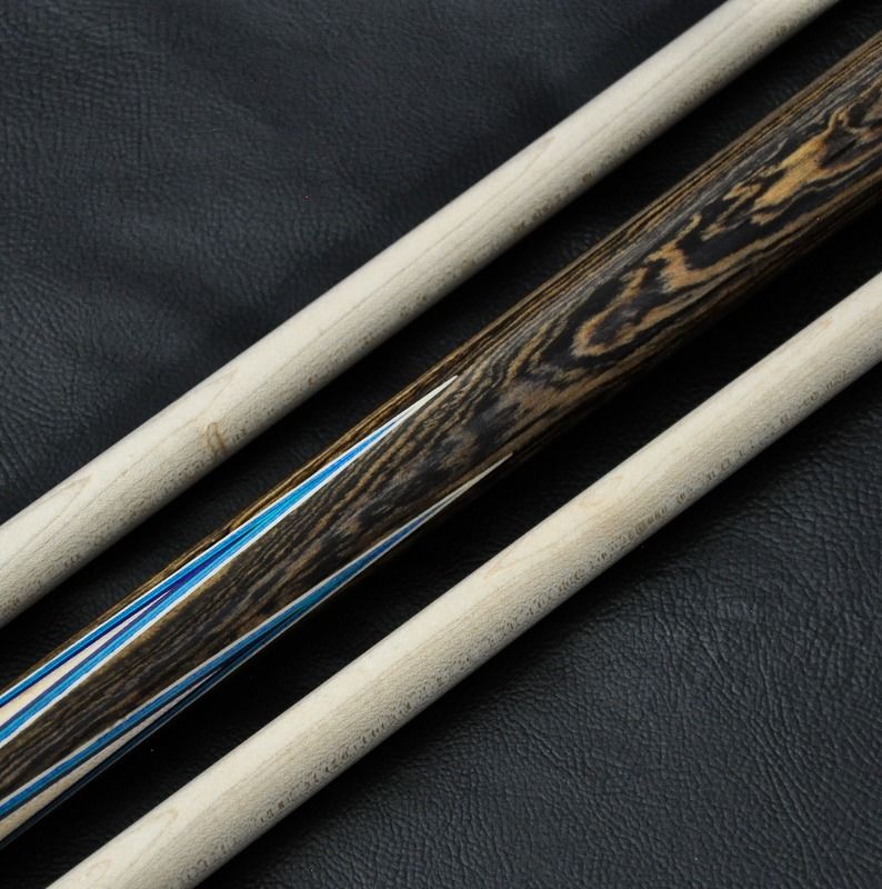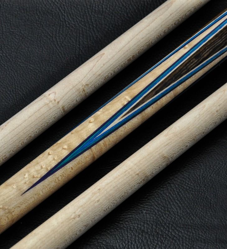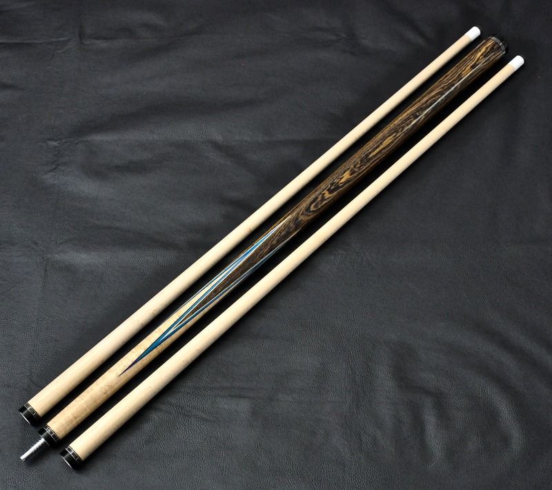 Here is another Wes Hunter that I received with the Hickory Burl cues. I am confirming the full splice with Wes but I believe it is an Andrew Rounceville blank (Andrew may be able to confirm as well). The cue is executed perfectly and I just love the Bocote ringwork but the Bocote blank is so nice, the veneers are tight, sharp, and dead even.