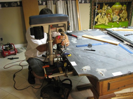 So.....I delivered and set up his Diamond 7ft ProAm, then took apart his Delmo 9ft'er only to discover what the real condition of this table was. In the following pictures you'll see just what I saw when I took the table apart
