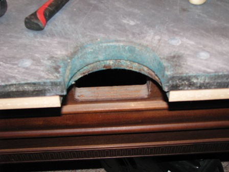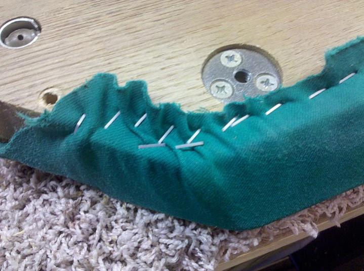 Here's a table I worked on not too long ago. Before I got to it, another guy had brutally hacked up the ends of the rubber when replacing it, and covered the table with some slow, loose cloth: