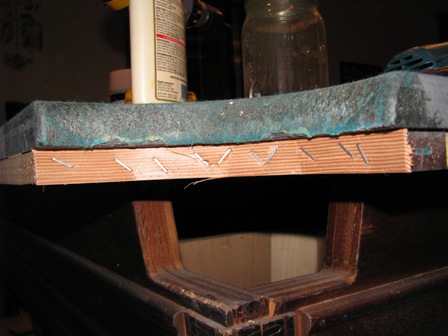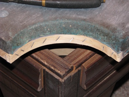 Wood on bottom side of rail was damaged from so many re-covers that I had to replace it with new poplar.