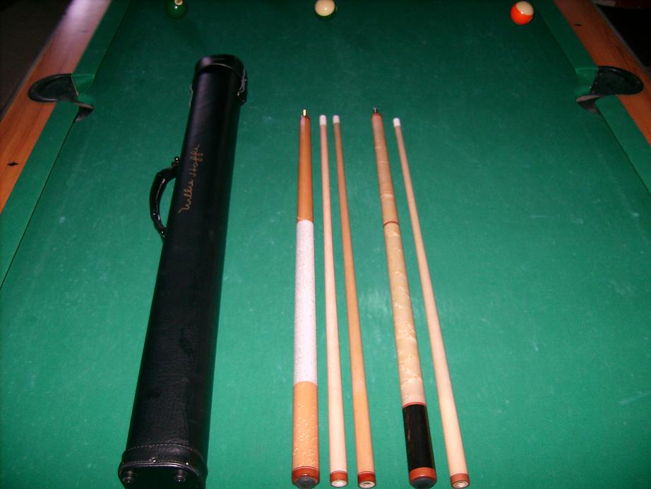I have a nice package deal here with a BEM Southwest with 2 shafts a Madison Bob J/B and Predator Willie Hoppe case. The SW is in fantastic shape and the Madison Bob breaks a ton. The case holds 2 butts and 2 shafts and is in great shape also. I have the SW listed on here by itself if anyone would like to see better pictures. The SW butt weighs 16.4 ounces and the shafts are 3.7 and 3.8 ounces. The Madison Bob cue has the radial pin in both locations and has a satin finish. I am not a big fan of the phenolic tip/ferrule but if this cue doesnt sell soon I will keep it and break with it. I had a lot of interest in the SW when I listed it originally but I have been out of town a lot lately and have had the cues with me, so I have not been on AZ. SOLD