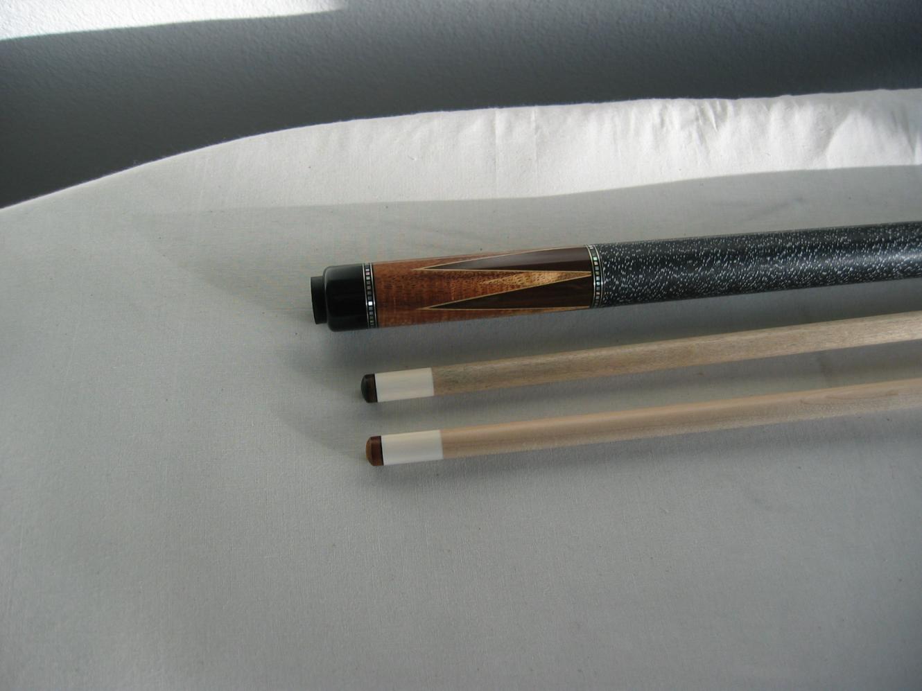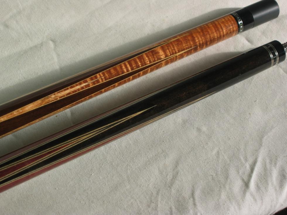 issycue can't get enough Silver Member Dec 13, 2009 #1 Here's a Hawaiian Curly Koa Bender... top cue (bottom cue is a Brick)