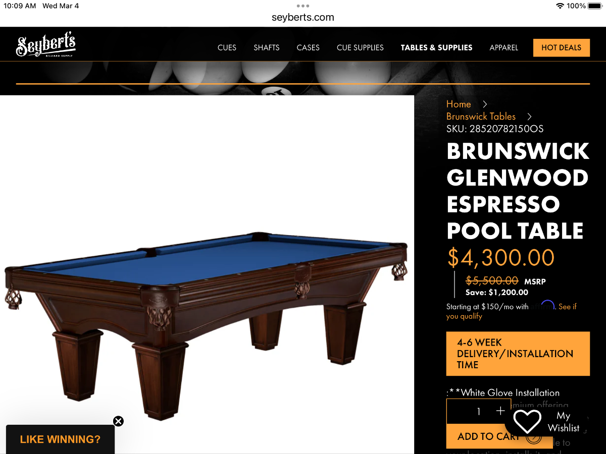 I know the owner of Rebco. He lives in Fresno and his warehouse is still here.it is filled with collectible pool tables that includes some 6 leg tables. Bob had brain surgery a year ago and his health status has been precarious buy he is still with us thankfully. Bob is a character that stands tall in pool lore, right along with Dan Dadian who brought professional pool players that were his friends to play in Fresno. Rebco tables are very good tables but not equivalent to Rasson, Diamond or Brunswick 7’ tables. I am surprised no one mentioned 7’ Brunswick tables. I played on one last summer over a weekend and the table quality was amazing. And price competitive with Diamond tables too so I’d go with a 7’ Brunswick pool table with 4.5” pockets and Simonis cloth. The pocket size is what Diamond tables and most tournaments use.they aren't still made are they? thought they quit making tables yrs ago.
