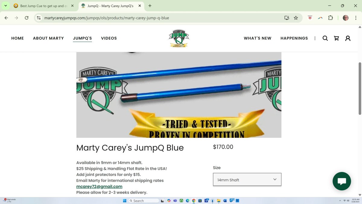 Is this for just darting or both styles of jumping?For short distances like that, Marty Carey jump cue in 9mm or 14mm for $196 shipped