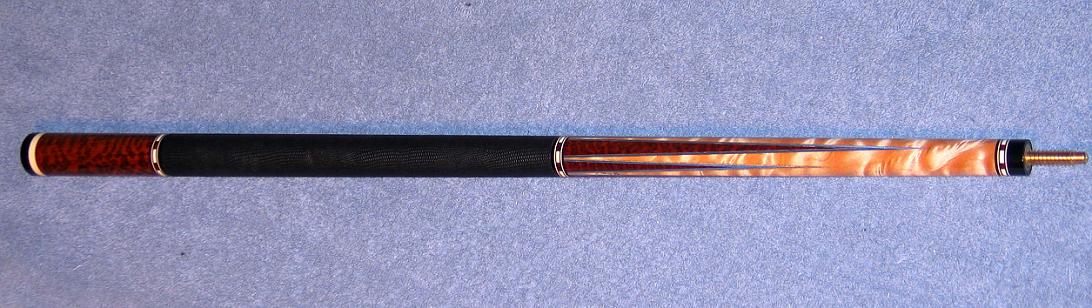 I have a Hurricane J/B cue..It has 4 points of Cocobolo into Bem..The handle is Bem. The but sleeve is coco with two pink ivory and silver rings in it..5/16-14 flat faced steel joint..Your right not only is it a super looking cue, breaks a ton and even plays good..