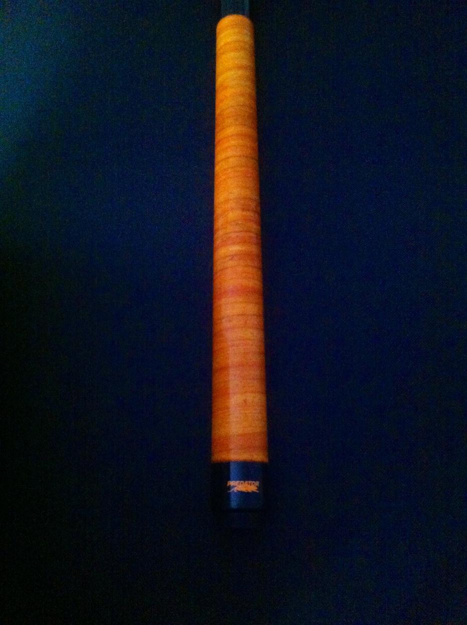 I sent my BK2 to Muellers a couple weeks ago to have Ryan install a stacked wrap on it. It use to be wrap less. I know the wrap is worth more than the cue but I just wanted something different. I ask Ryan to try & match the color of the wrap to the color of Predator's panther. I have to say he did a fabulous job. My pic's give his work no justice.