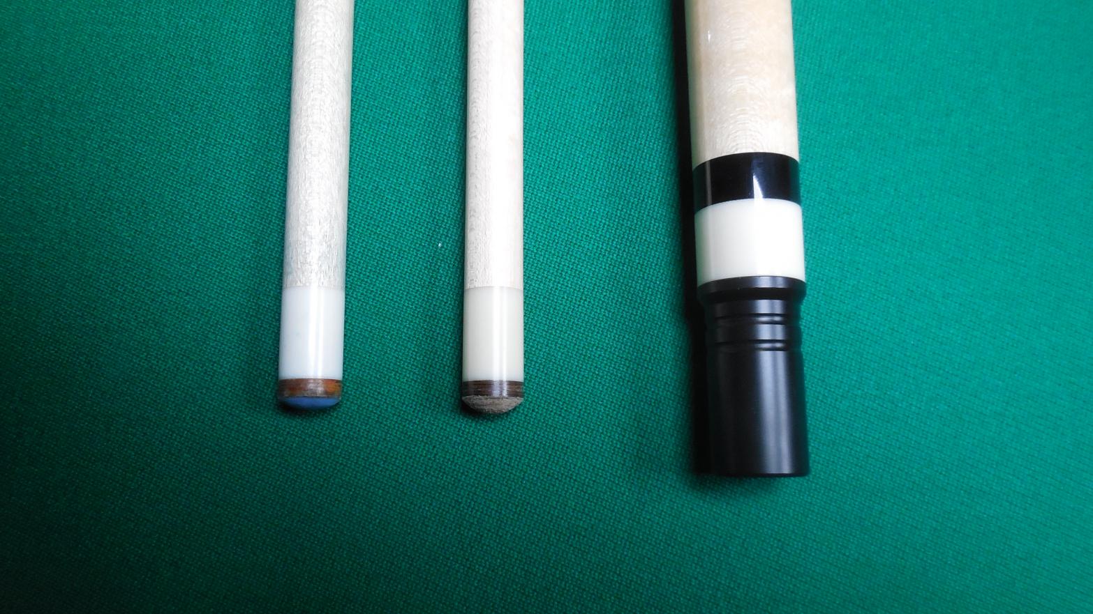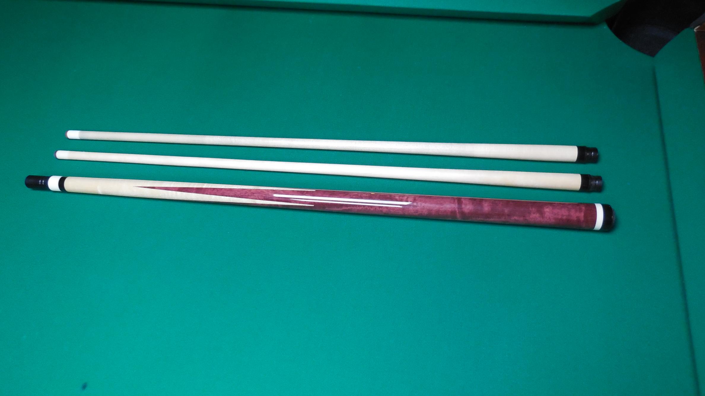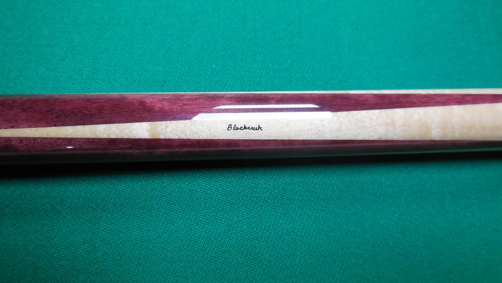 Blackcreek Sneaky in Purpleheart straight grain maple. radial pin 2 shafts. 19oz 12.95mm shafts. Very nice full splice cue with long razor sharp points. One shaft has play other unchalked. butt is excellent. New Price sold shipped/insured f&f or add 4%