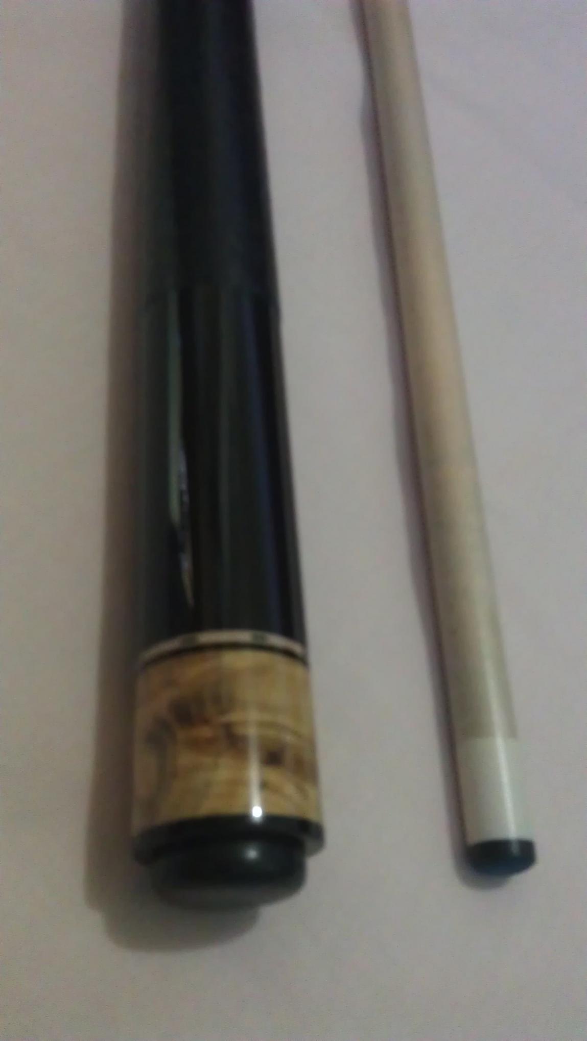 Solid gabon ebony nose with purpleheart handle under the wrap. 19.55 oz, 3/8 x 10 brass pin, buckeye burl joint collar and buttcap. Low deflection shaft with kamui black soft tip.