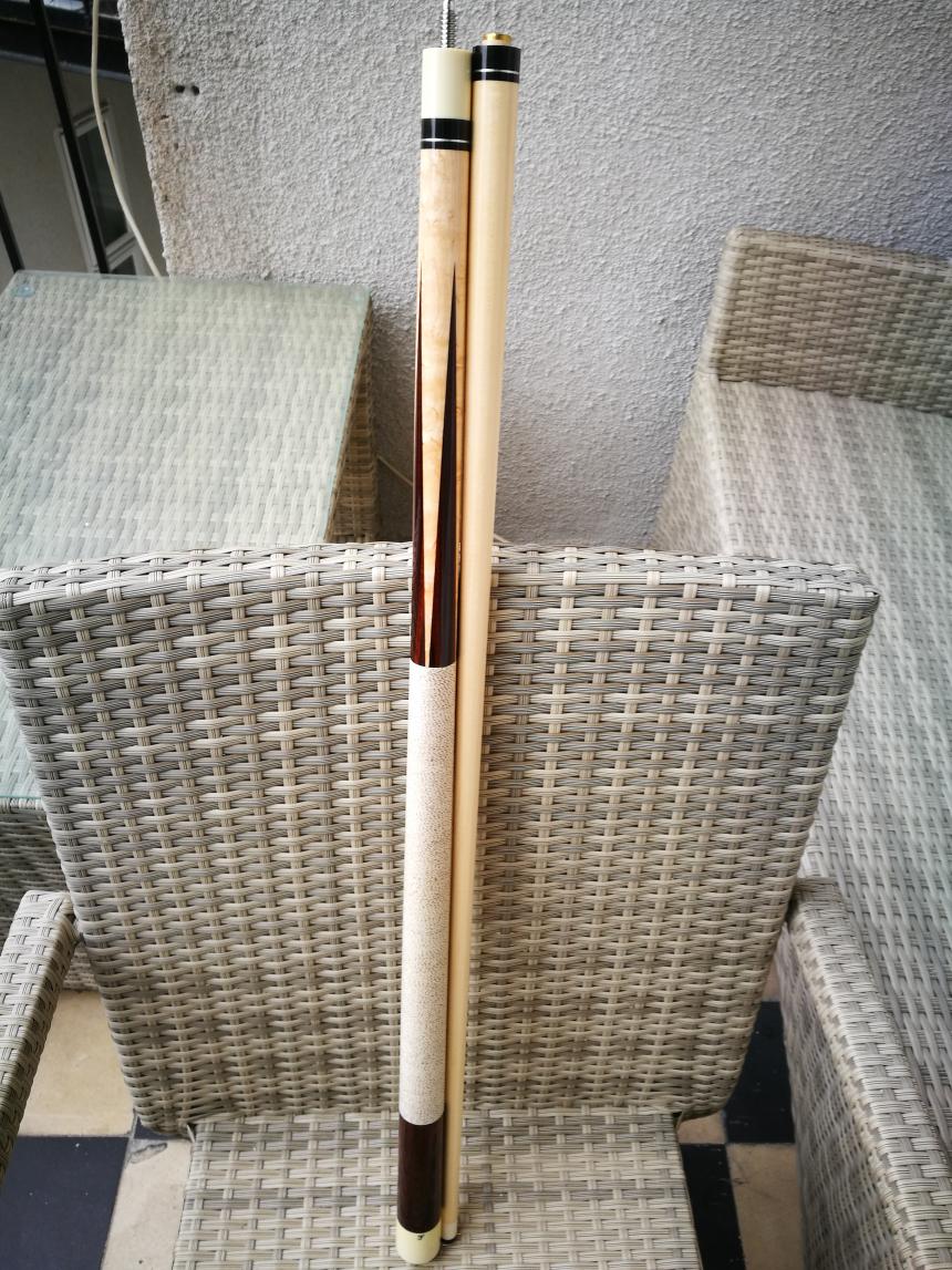 Butt: 15.0oz, juma joint and buttcap, white w/brown specs linen wrap, 5/16x14 piloted pin