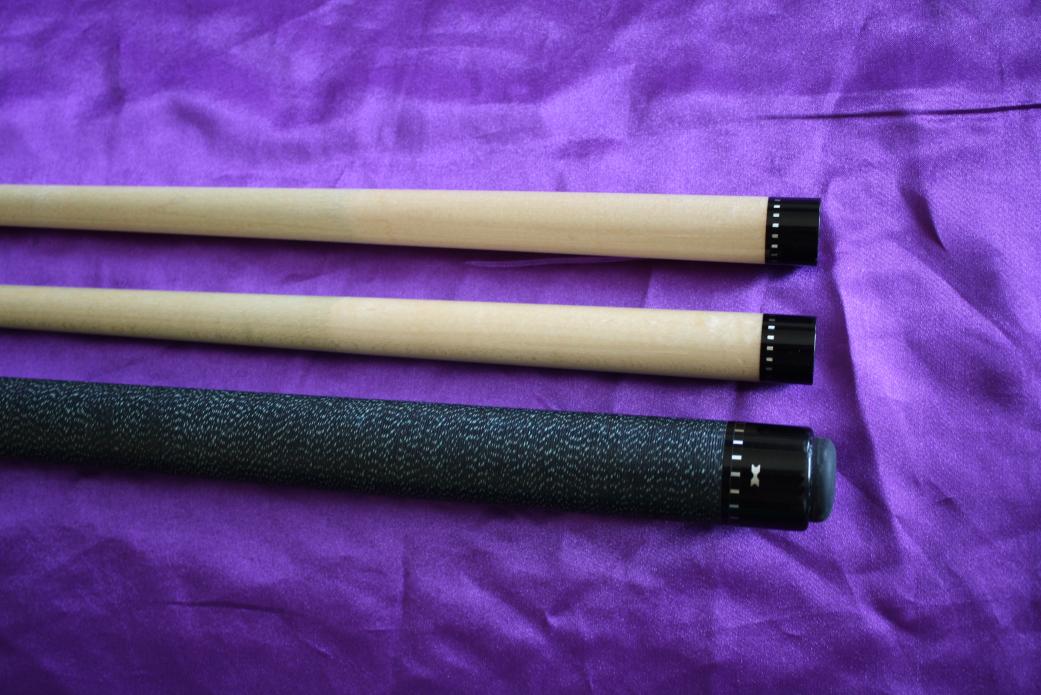 Beautiful Players cue here. Ebony with nice Points with Turquoise. Cue has extra long wrap for tall players so your hand stays on the linen. Shafts are super smooth with nice ferrules. This is a players cue and has some minor flaws in the ebony and marks in top part of shafts so not mint condition. Nothing to worry about but want to be up front about it. I bought this cue, a Franklin Southwest and a Tascarella and all the dealer kept talking about is how great the Hunter plays! And he was correct. Really surprised me. Can't get use to a 60" cue myself but I know lots of guys do like them.