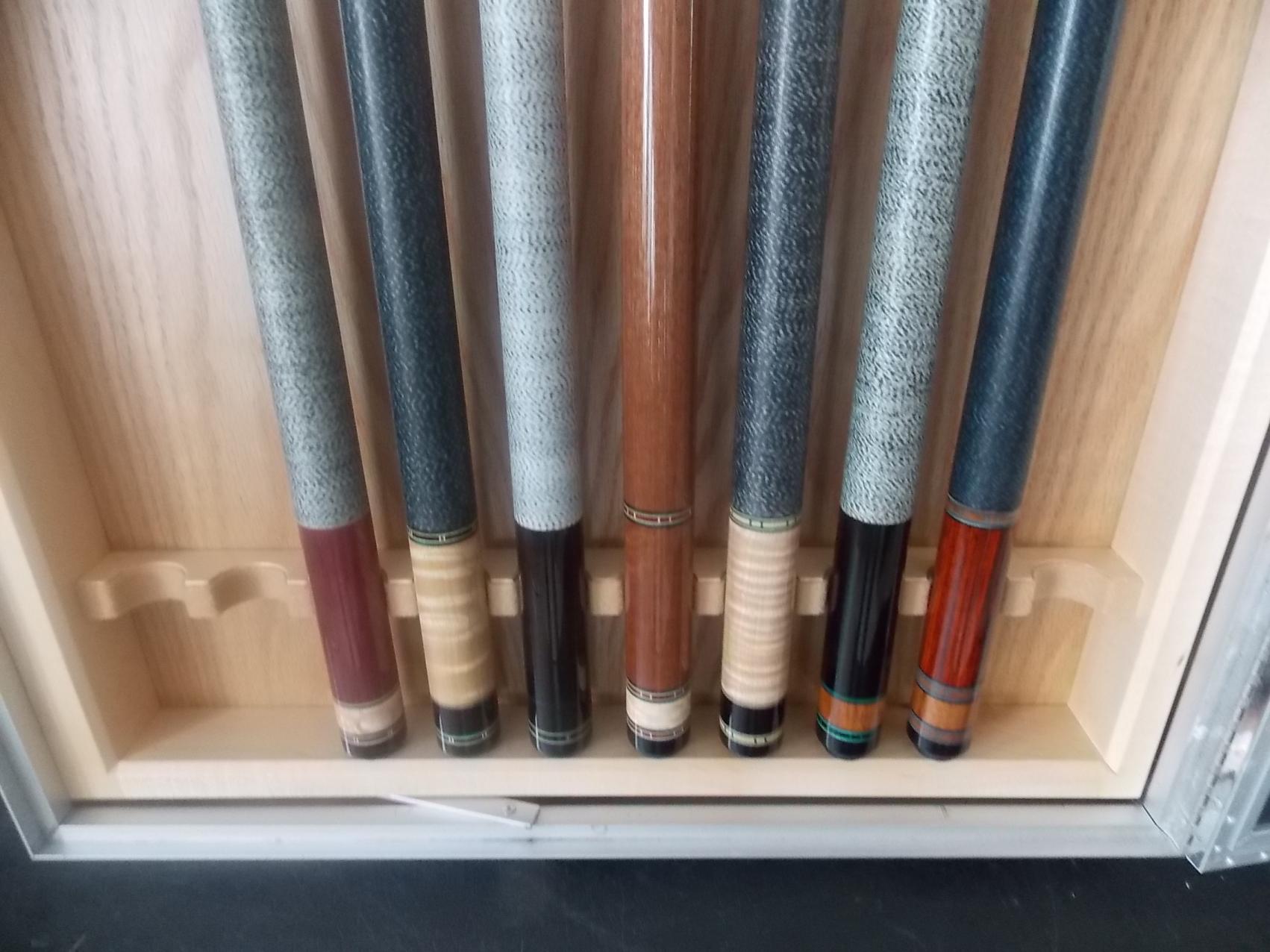 South West Cue L to R, 348-96 Franklin [24 yrs unchalked], 405-02 Curly Maple on