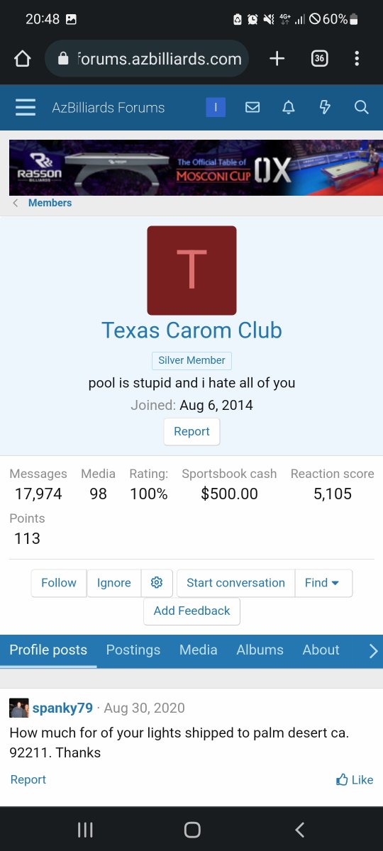 He for some reason thinks and suggests that i post here cues that i sell what is not true. I am a collector and i post cues and write about them and about dealing with cue makers.Too much vodka.