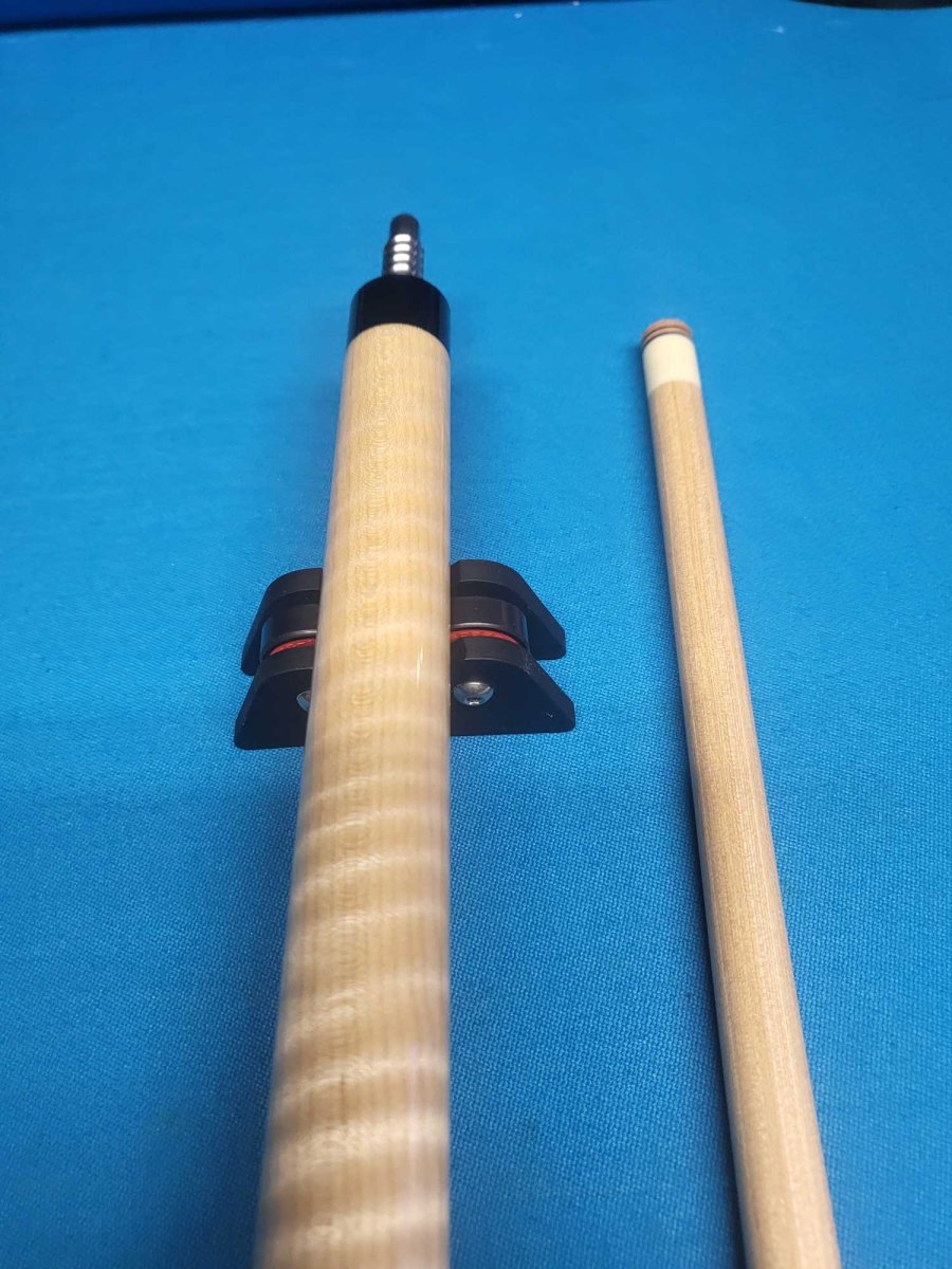 The Jacoby 0824-258 Sneaky Pete cue is made from Highly Figured Tiger Stripe Maple and Bacote Wood. This cue features 4 True Splice Bacote Wood Points and Bacote Wood Handle. The forearm is Highly Figured Tiger Maple and comes with 1 12.75mm Ultra Pro Shaft.