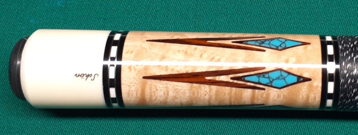 Brand new Schon CX 03 fs. Nice Turquoise, Cocobolo inlays and 6 points. Cue is dead straight together and apart. Butt 14.37 oz. Shaft 4.54 oz. Cue is perfect. List price is $1351. I will sell for lower price $$$ SHIPPED CONUS. You can't buy it for that price. OFFERS CONSIDERED ON THIS ONE.