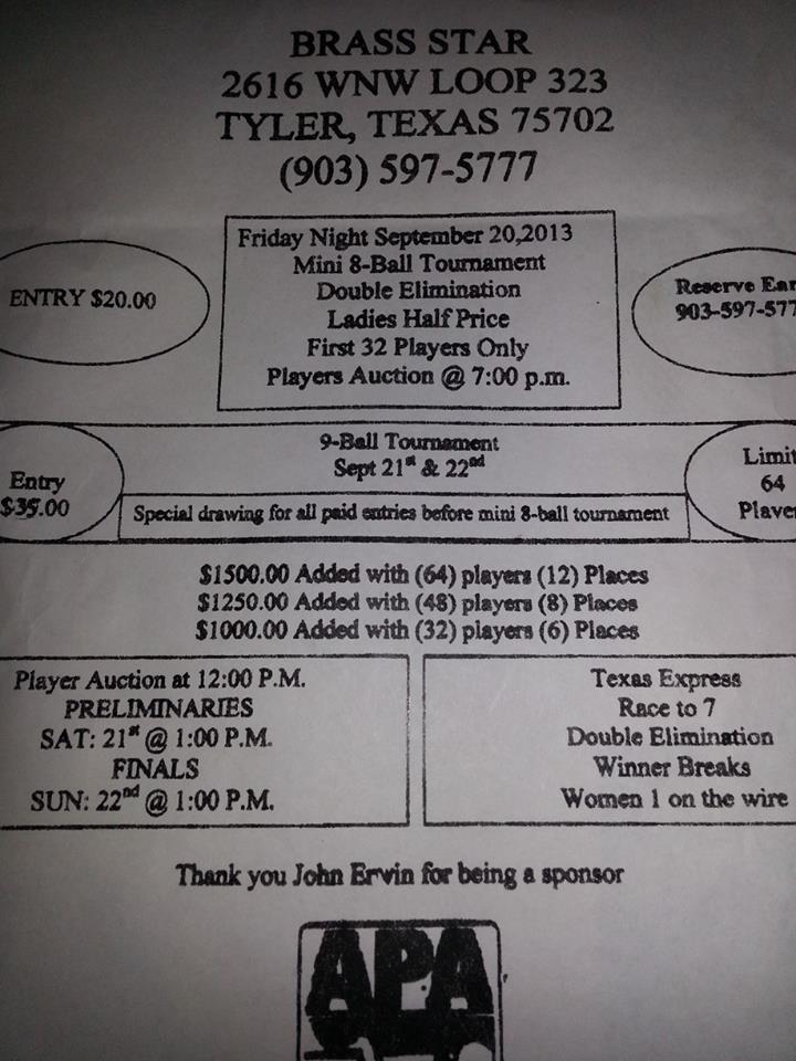 This tournament was once a pretty big deal and ran regularly. This is he first time having it in a few years. In the past there were some sure enough champions showing up and it was a great turnout. We shall see how this goes, but I know a lot of locals will be there.