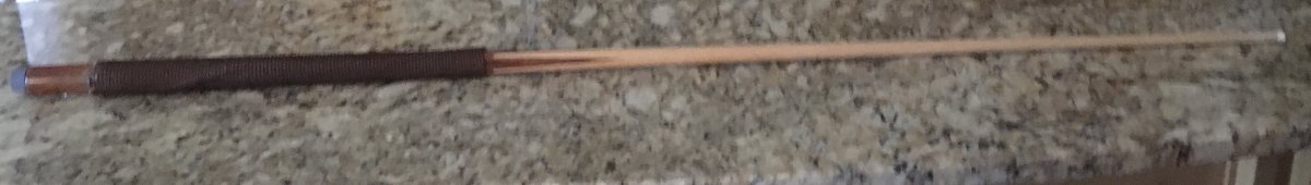 Here’s my break cue. A Dufferin ‘High Run’ I bought for less than $50 and wrapped myself with brown paracord.