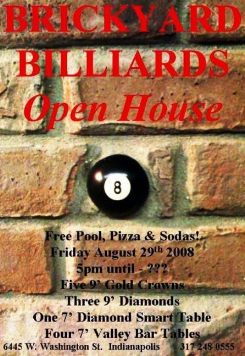 Brickyard Billiards Formerly Airport Billiards Open House! Come checkout the new place and improved place!