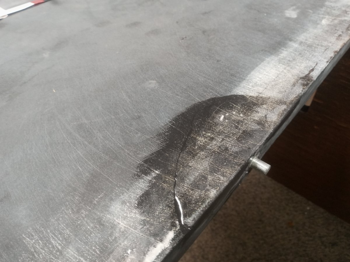 Older Brunswick Heritage 8 foot table, 3 piece slate 1 inch thick. We assembled the base, put the slate onto the base. Scraped all the joints and surface clean with razor blades. The slates have metal dowel pins to locate everything and we slid them together for an initial fit. One of the ends wasn't sliding in and my friend who owns the table got it to go, but we didn't notice that it forced the dowel up towards the playing surface. The weight was enough to crack the slate which we didn't notice until he got a nasty cut running his hand over it. I gave it a poke and at least 2x3 inch chunk of slate popped off down to the dowel pin. The piece still fits tightly where it came off.