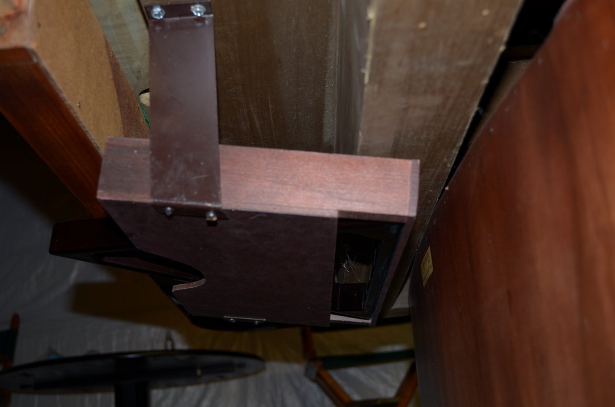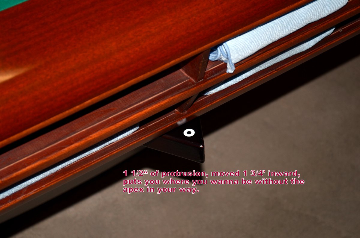 Edit: Sorry about the pics being upside down, or sideways. I suppose I need to delete the pics and try again. I deleted the pic of the ball box below so this one below is about the best I can do, you can clearly see the triangle sticks out too far. I suppose I can improvise and remount it, but I would like to do it the right way if possible.