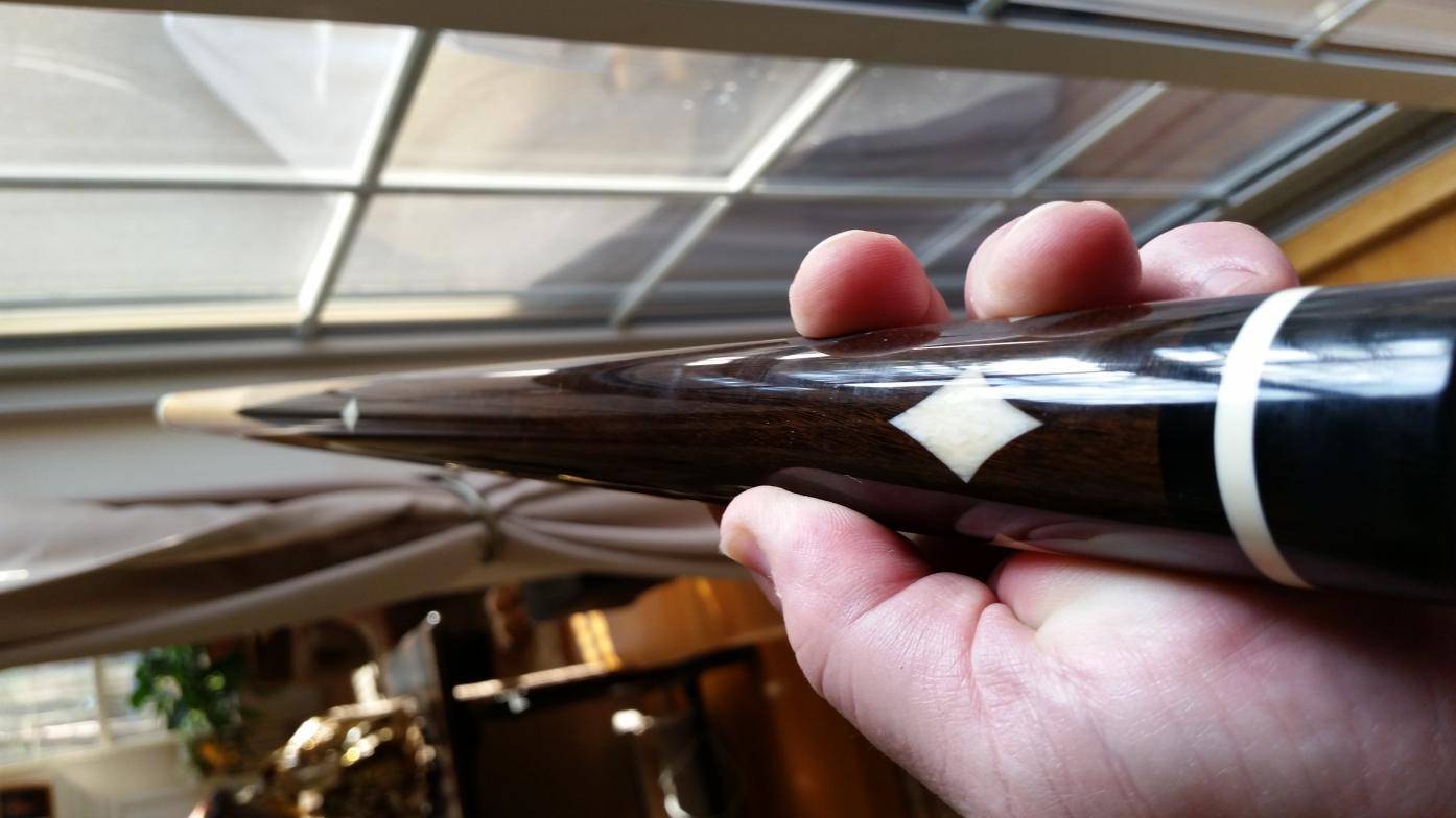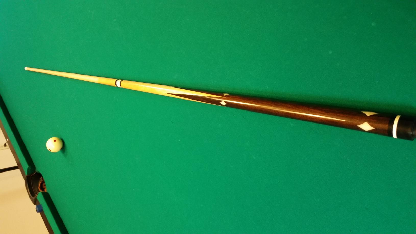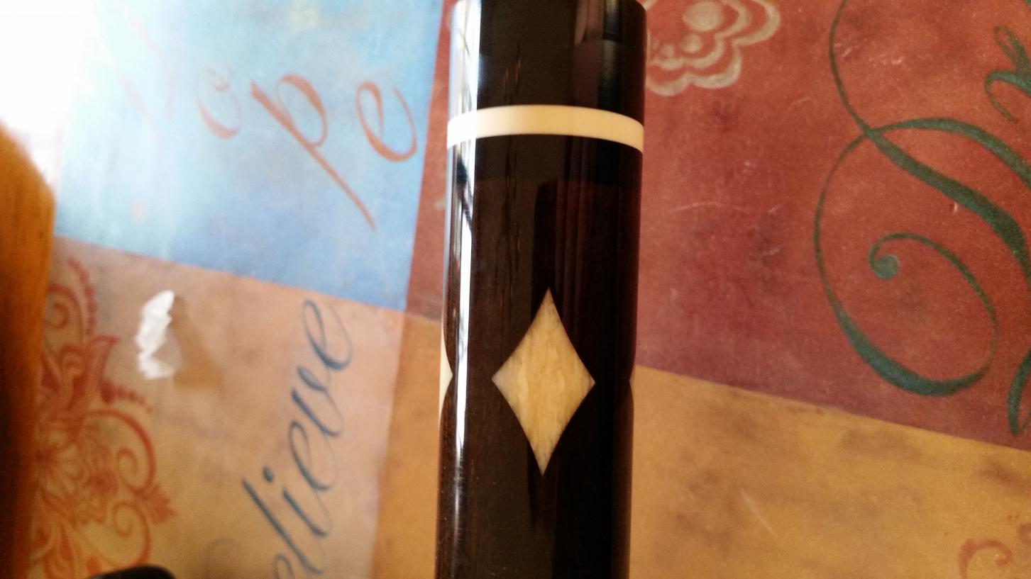 30 or 40's era brunswick cue. The shaft is the original shaft to the house cue. The cue, according to the customer, is a beast. Ebony full splice with diamond inlays.