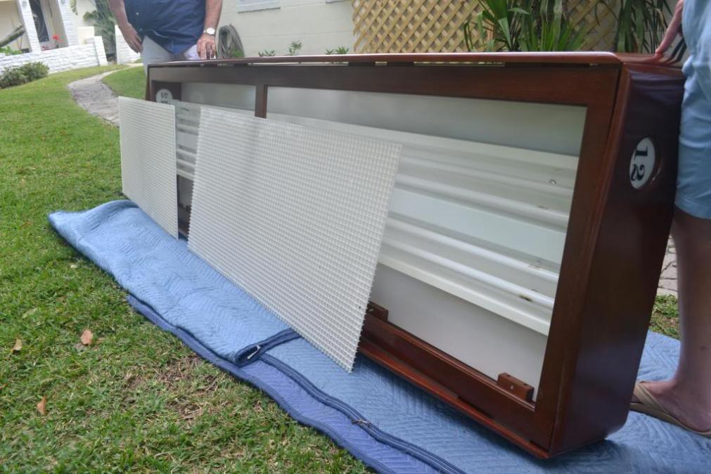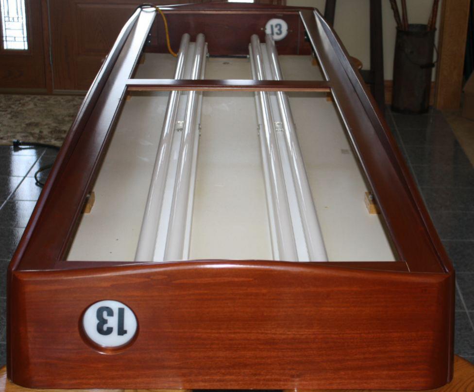 I've already got a metal shop that can fab up similar aluminum corner castings and I am working with a local vinyl graphics house to replicate the table skirt laminate woodgrain design on self adhesive vinyl. I like the design on the bottom of the GC Light; framing in the diffusers looks clean. I wonder how they get them to sit flush.