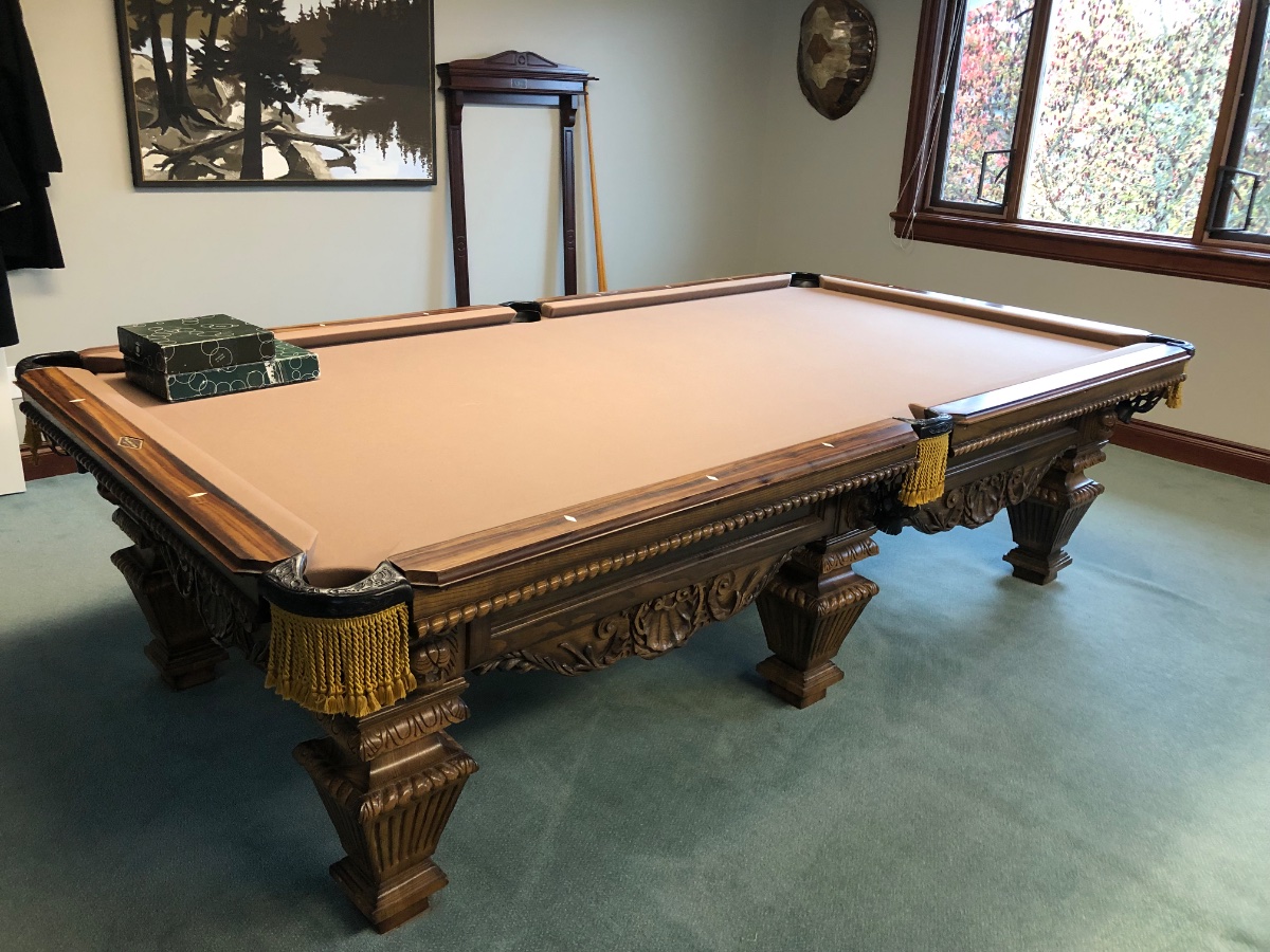 The 9' Brunswick Royal Knight delivered and installed to your location with brand new Simonis cloth, Brunswick Centennial pool balls and Jack Zimmerman doing the rail calibration for $7800
