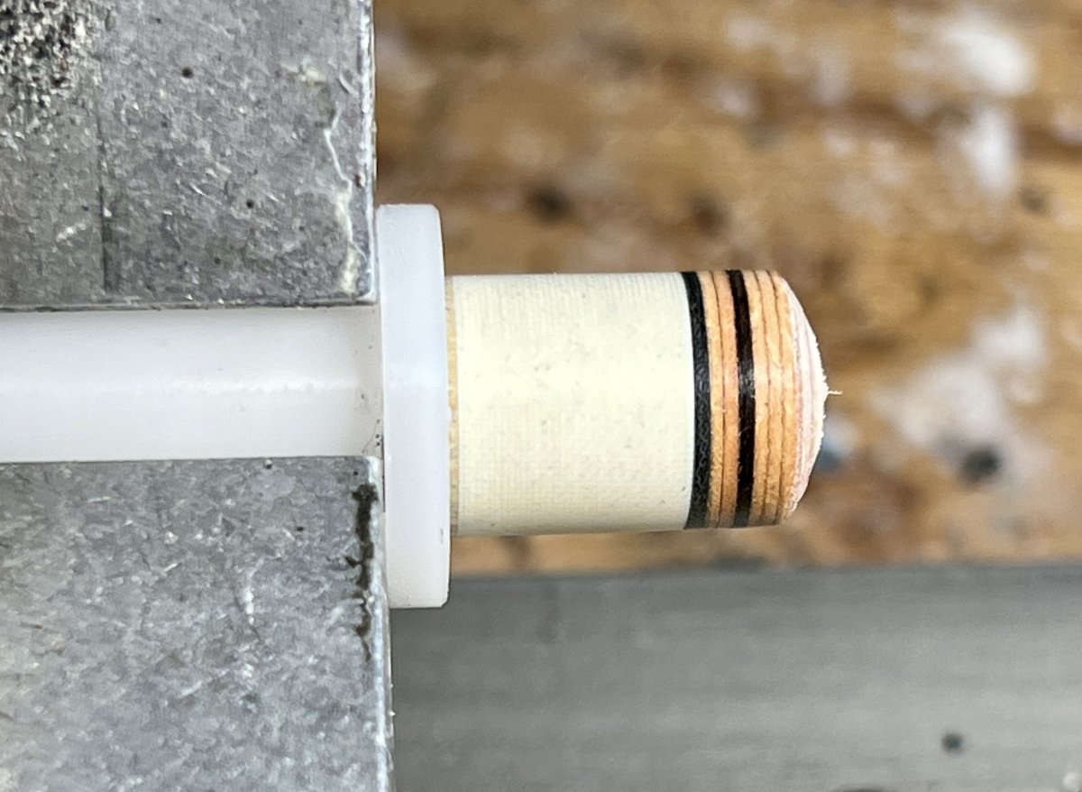 The lighter-colored wear layer of the Warrior is the third of the ten-layered cue tip. Photos from bash22am (left) and Bamacues (right) :Caiden Warrior tip, I have recently installed it on my Jacoby Carbon Fibre shaft