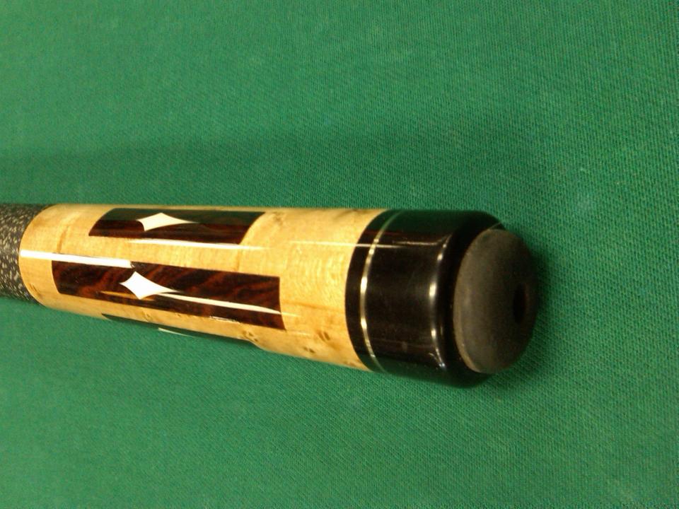 The cue appears to have razor sharp points, and razor sharp inlays which is a great sign imo... a pic of the pin, and joint might be helpful to determine the builder. It also would be nice to see a close up of the inlays to see the quality of the work..Nice looking cue considering the pics..:D
