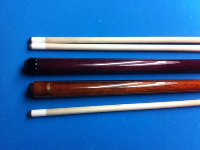 First is a Carmeli Sneaky from 2010 that is purpl heart with the dash rings and comes with 2 shafts, both are near 13MM i will give the exact specs of the ferrule size today with my new caliper. the cue is straight together or apart, i am selling this cue with both shafts for $350.00