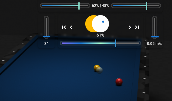 In CaromBall, I found myself using the Standing View exclusively. I like to be able to see the entire table at once while aiming. I very much like the top control panel and how I can interact with it with the mouse. I have a couple of concerns.
