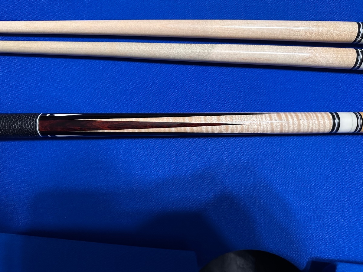 Selling my CEM 6 pointer Cue with 2 C3 maple shafts; radial pin. Also comes with a carbon fiber extension. Included as well are the custom matching joint protectors. Cem is custom cue maker from Munich, Germany. You will rarely find these in the states. Shipping from Port Saint Lucie, FL. $2,500 shipped OBO. I would consider trades as well.