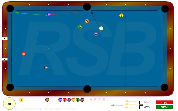 Thanks for the reply Joe, I considered 3 rails but thought the 2 might get caught in the junk in front of the side. Every now and then I sink a ball in the corner (trying for the side) so I figured I'd try it since the three was right there.
