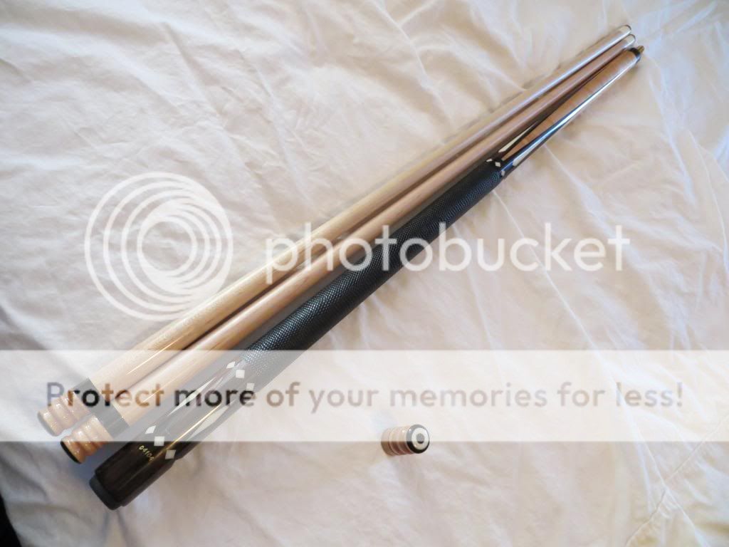 Here is one for a low end cue Patrick Novarro will only sell in the lower USA at my risk But if buyer wants to take the risk and is willing to pay more on shipping cost I can send send it where ever specs will come if needed but it plays great IMO