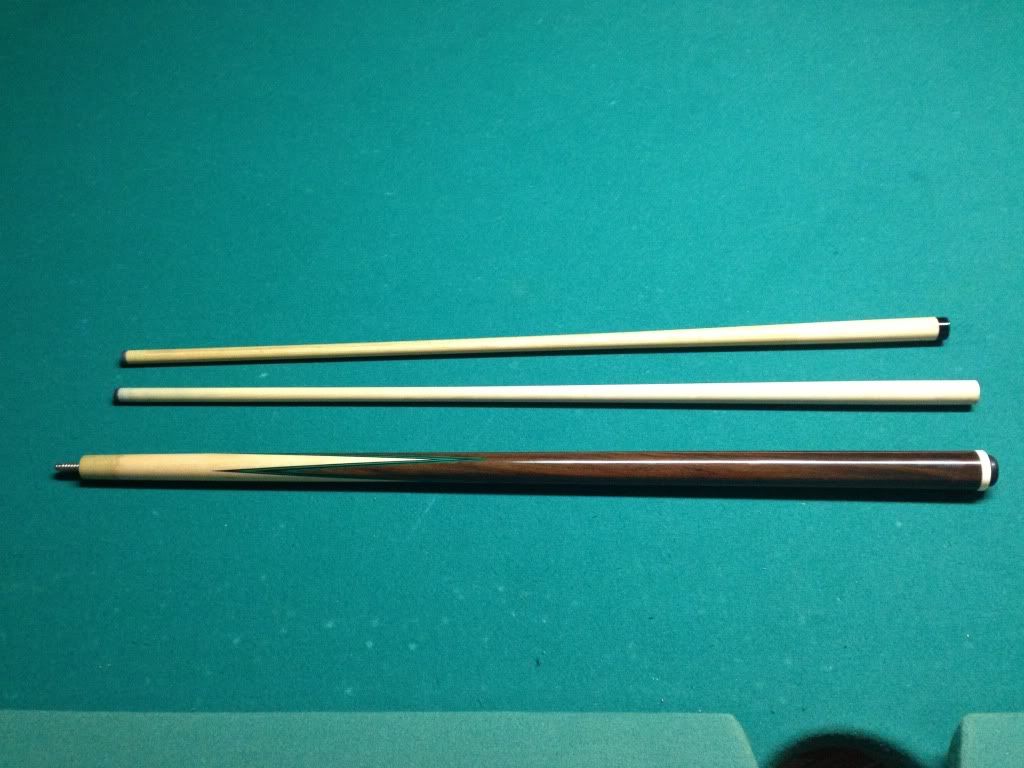 I have a cheap sneaky for sale. It is a CM98 cue that cuemaster98 here on AZ made. Made from the predator sneaky blank with green veneers. Has two shafts. One is his shaft. This shaft has a hard moliva tip. It has an issue with the threads though. If you tighten it down to much it slips on around. You can play with it if you tighten it up slow. It's an easy fix according to some cue makers. Would cost about 30 bucks. The other shaft is an OB-1. The shaft is almost new with just a little blueing. It was just replaced by OB. 12.75mm. Had the collar turned down when ordered to match the butt. It is .80 at the joint. Matches up perfect. Has a layered tip but not sure what kind. No dents on the shafts.