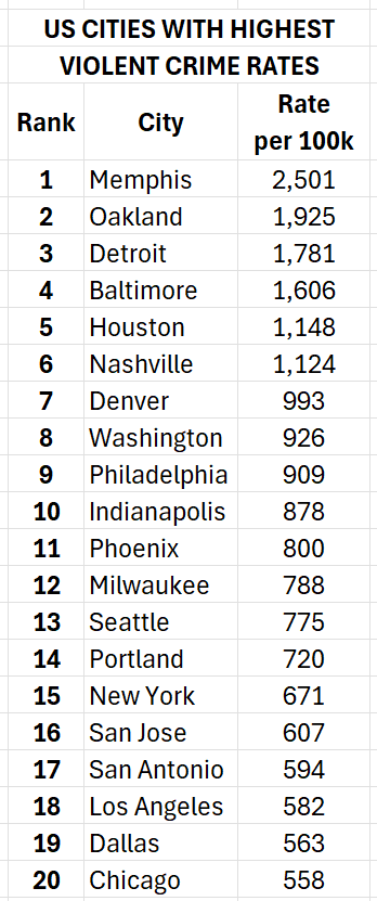 Just for context my other home is Oakland. Lol. #2. I’ve also lived in Denver, Portland, Phoenix and Atlanta.If anybody's curious, here are stats from 2024. Chicago ain't Disneyland, but it ain't Memphis either.