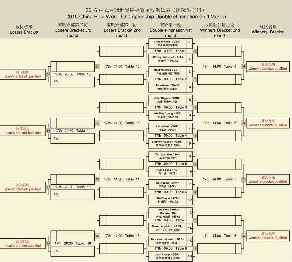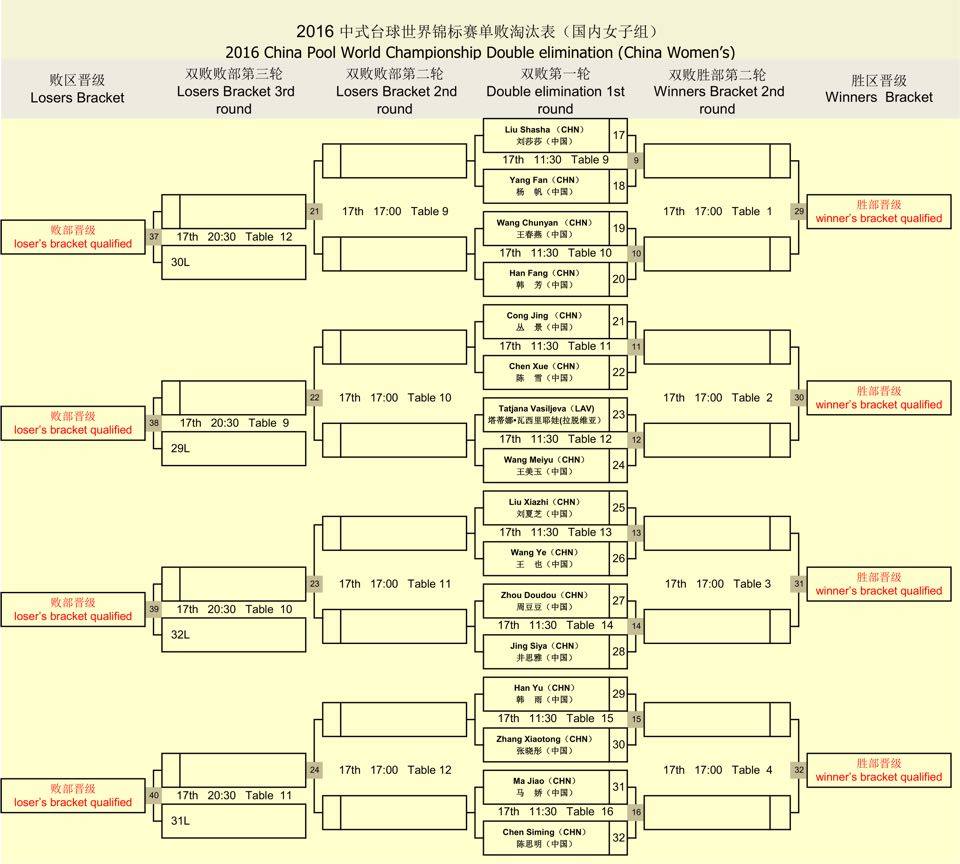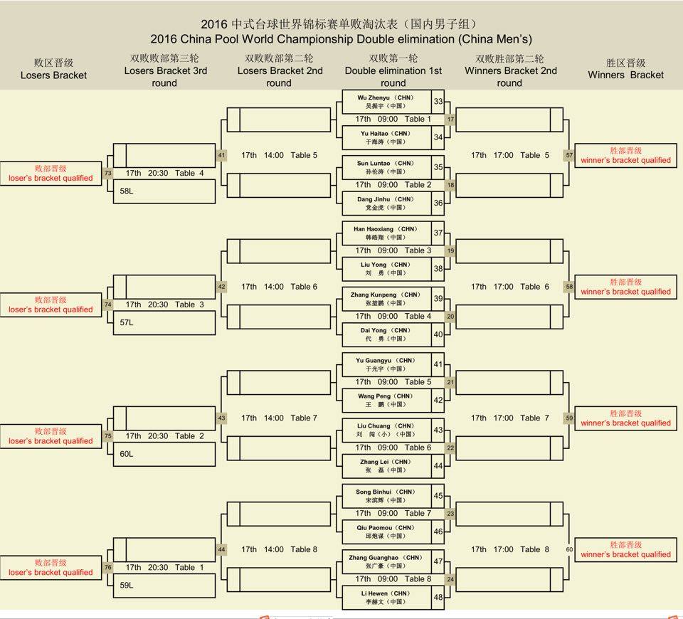 China Billiards World Championship Watch it Live http://www.ustream.tv/channel/turning-stone Stage 2 Brackets below more on next post