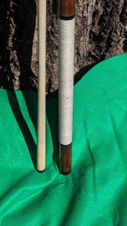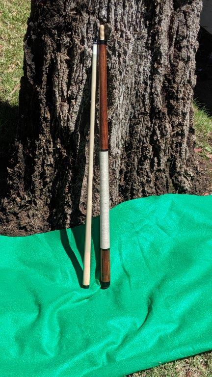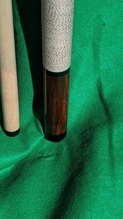 All Brazilian Rosewood Cue (not cored) with Wooden Joint. Great feel and very solid. Pete Tascarella Sr. adjusted taper to match a Tascarella shaft and added a nice linen wrap.