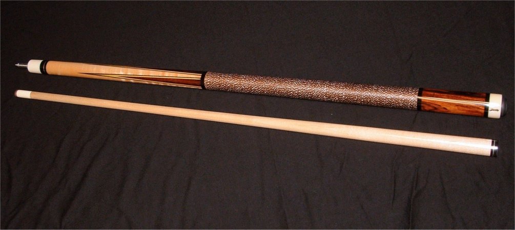 I bought this cue on the boards here a few weeks ago but sadly it was in pretty sorry shape when I received it. Craig (aka Manwon) has a great little pool hall and workshop in South Tacoma and after a week with him this cue came out GLEAMING. Way beyond my expectations especially for the price he charged me which I will not divulge on the forums. (if you want to know how much just send a PM to Manwon)
