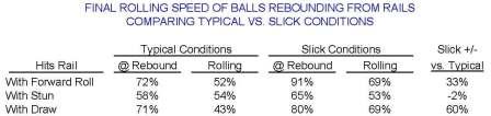 I can't remember if the Jacksonville guys did any profile ball-rail shots where there was significant jumping at the cushion, but it would be neat to explore more cushion interactions next time around.