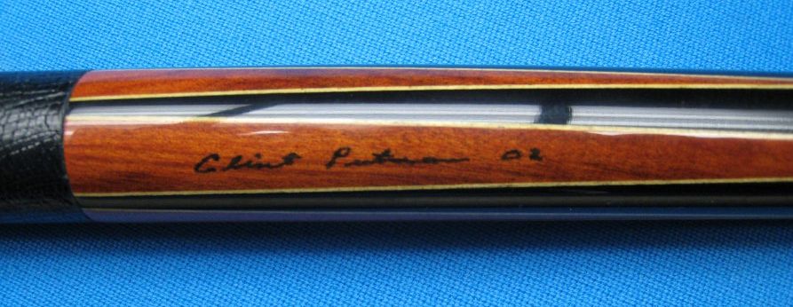 This is a 6 point ebony and redheart cue by Clint Putman. It has a Predator 314 shaft and a lizard skin leather wrap. It also has an ivory joint. The butt and shaft are straight. The cue weighs 18.25 ounces. There are a couple of minor scratches but overall the cue is in very good condition. Clint is a custom cue builder from Huntsville, AL. He made this cue in 2002. I am going to try selling here on AZ for a day or two and then it will be off to Ebay.