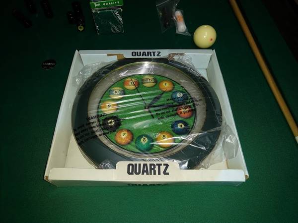 2 new old stock battery operated pool themed clocks $30 shipped for the circular and $40 shipped for the triangle shaped clock with Paypal