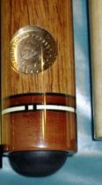 Beautiful cue Brent. The cocobolo has some great figuring in it. It's always hard to get the woods true colors to show in photographs. I'd imagine the coloring to be even more intense in person. Love those old gold coins too!