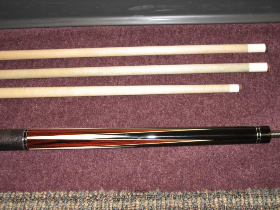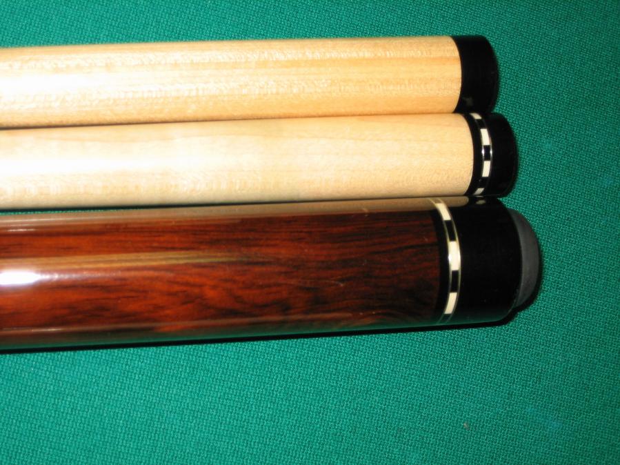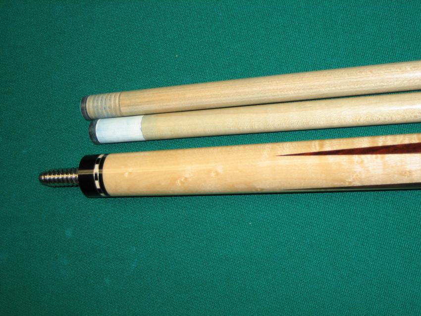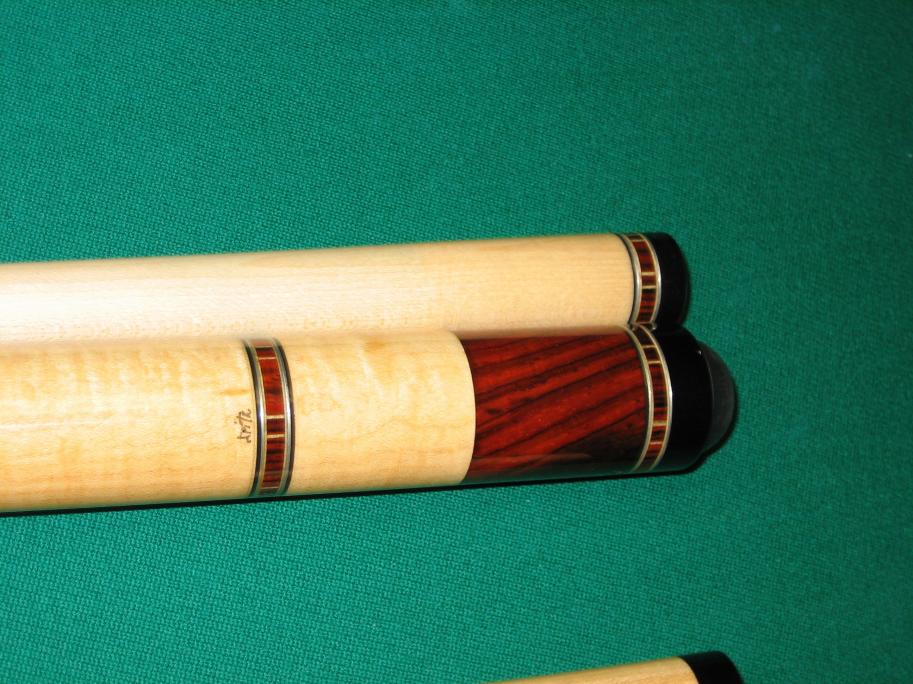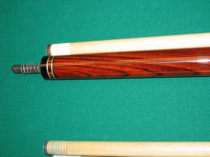 Jon Spitz custom wrapless cocobolo cue with G10 pin and maple handle (I believe):