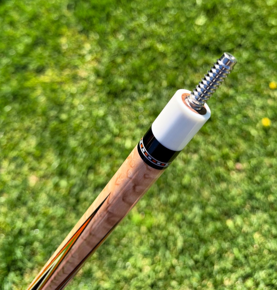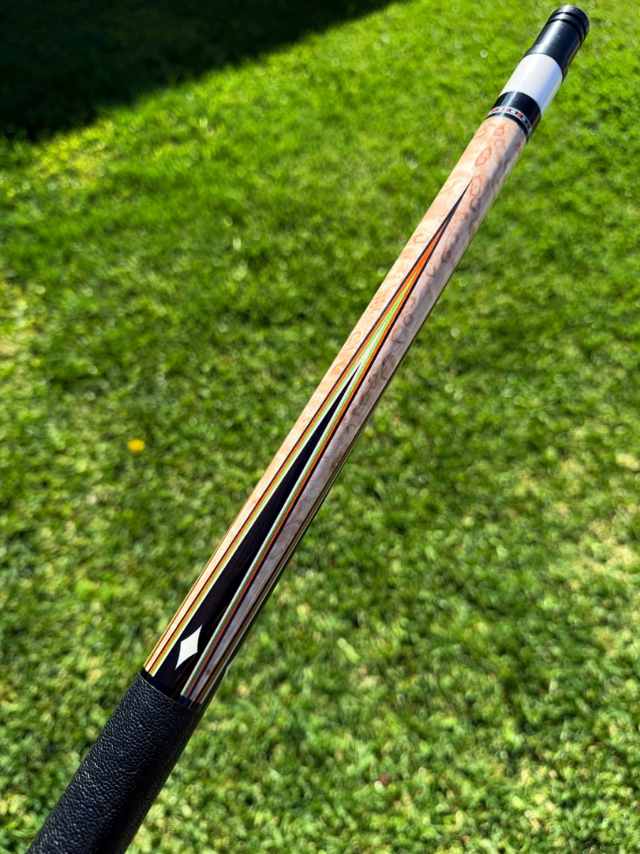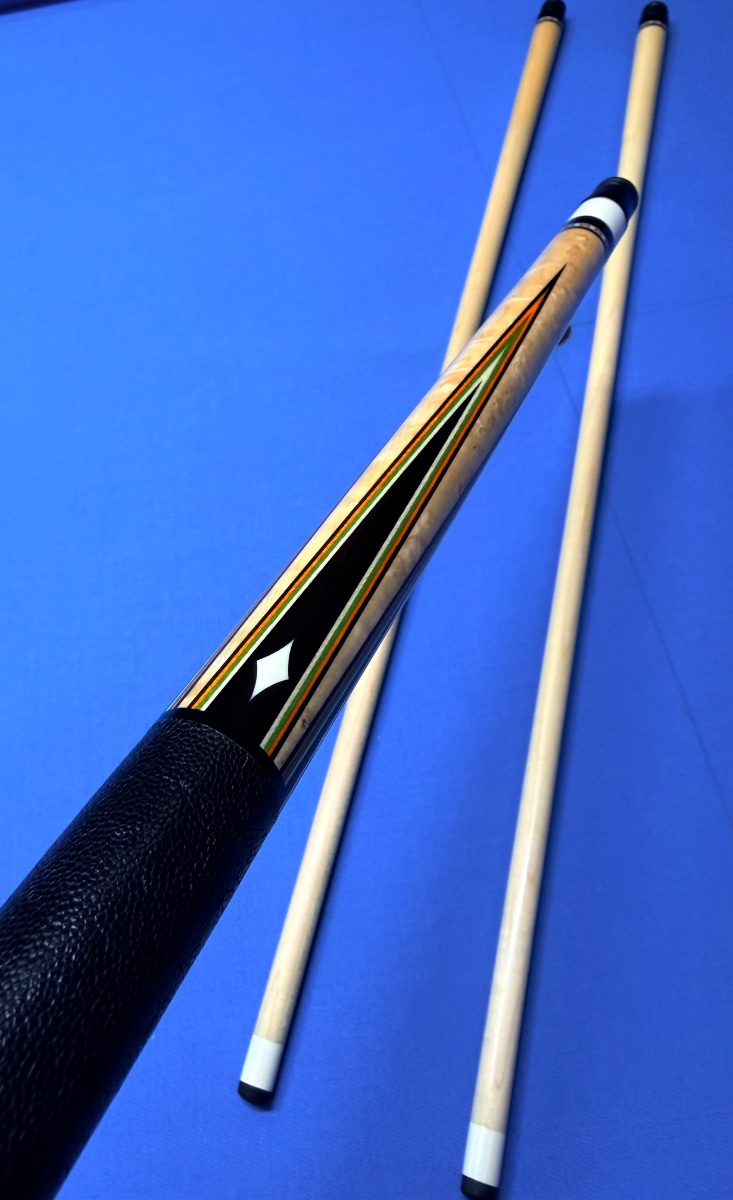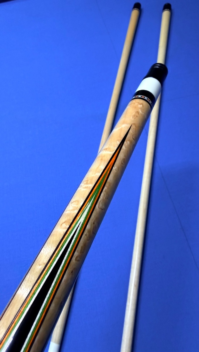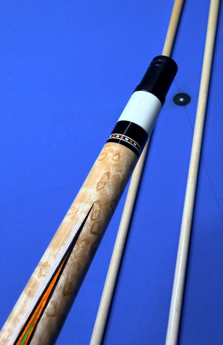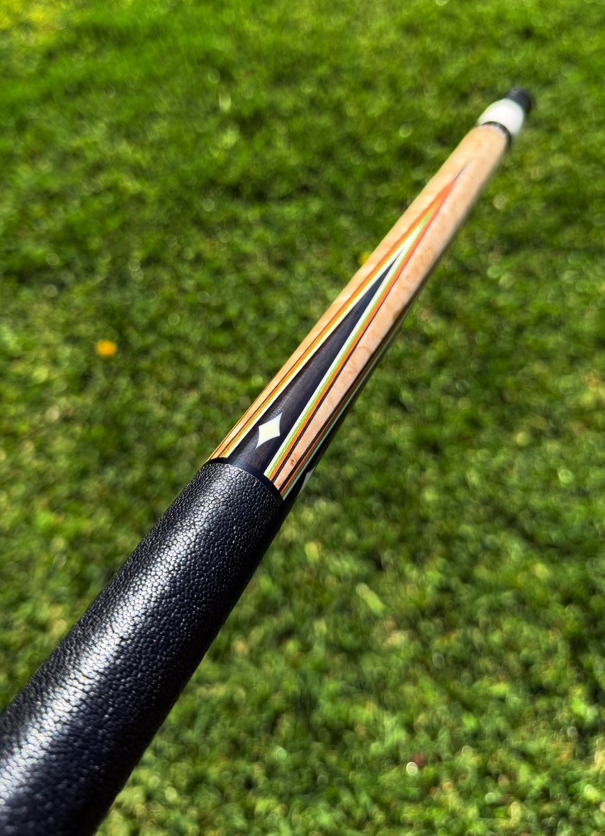 Here is a beautiful cue by Eddie Cohen, showcasing some stunning colored veneers and a hoppe ring!