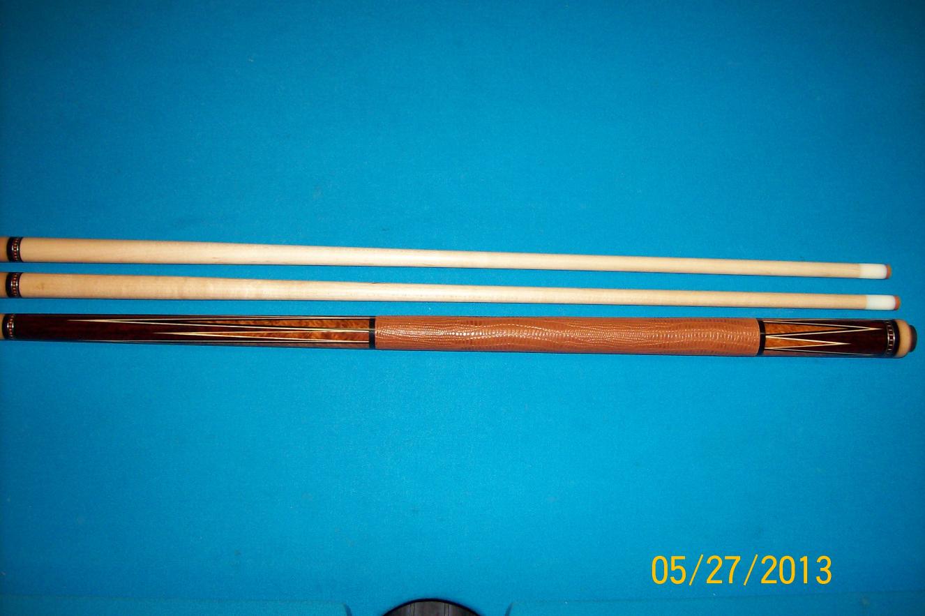 I bought this Coker new, May 2013..It is my playing cue... It's Cocobolo with Red Amboyna Burl points...8 above and 8 below...2 Bowling wood shafts with Med. Moori tips...Lizard leather wrap....Plays really nice and love the look...