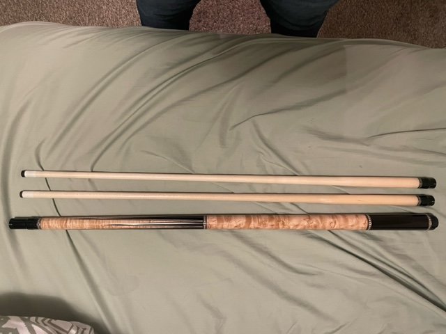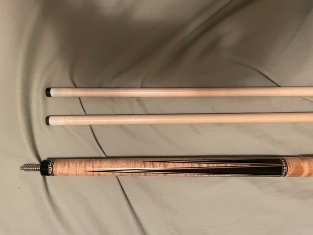 Condition : Used but excellent condition.There is little to no blueing on the shafts. There are no marks or dings in the finish as i can see. The only defect of the cue is that some of the silver ring work can be felt through the finish. The cue was sold to me new in that condition and it has not effected the play ability at all. The cue is superb and I have not seen many wrapless Coker cues.