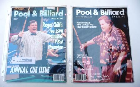 This is a collection of 2 billiard magazines from 1992 and 1998 featuring Roger Griffis on the cover. The issues included are listed below. Both are in good condition, no writing, tears or bends. They have been stored in plastic sleeves.