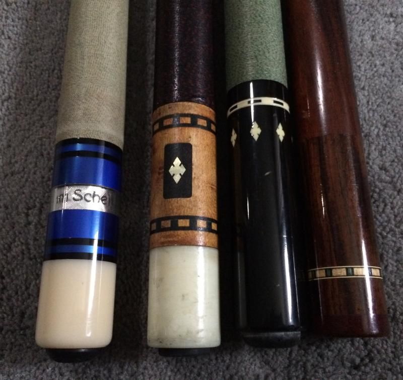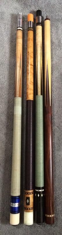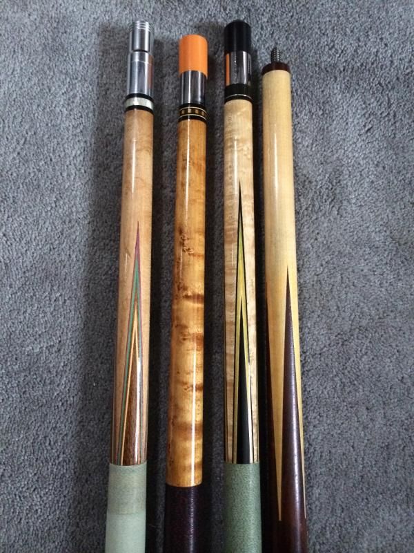 The second one is a Dale Patten. Marked as an unknown when purchased, later recognized on AZ as a Ritchie Florence cue by Dale Patten.