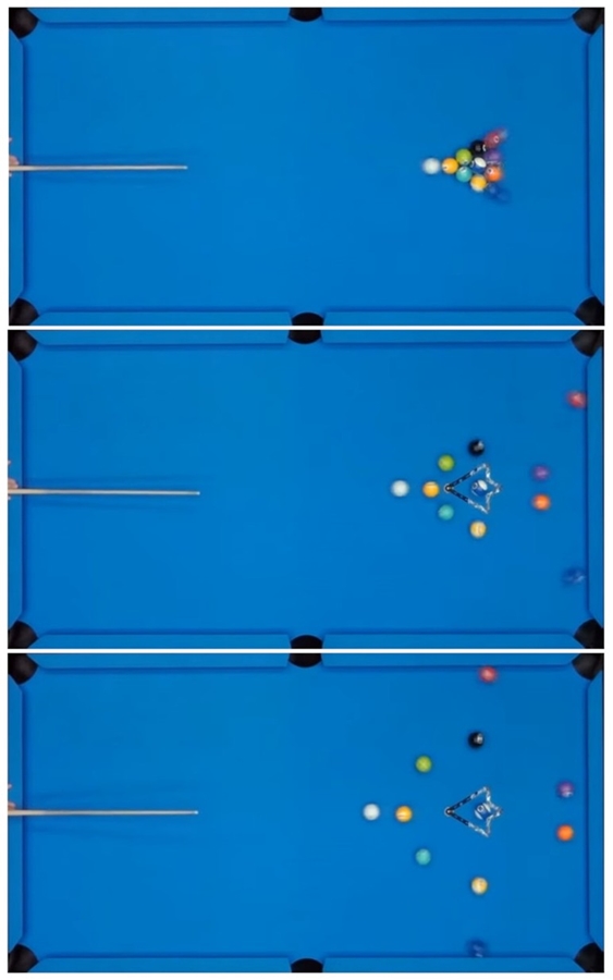 Here's how symmetrically the rack initially opens up - the 10 ball barely moves.
